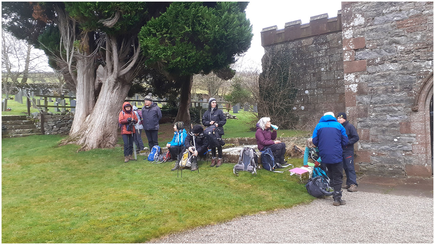 Enjoying a break at Dacre Church