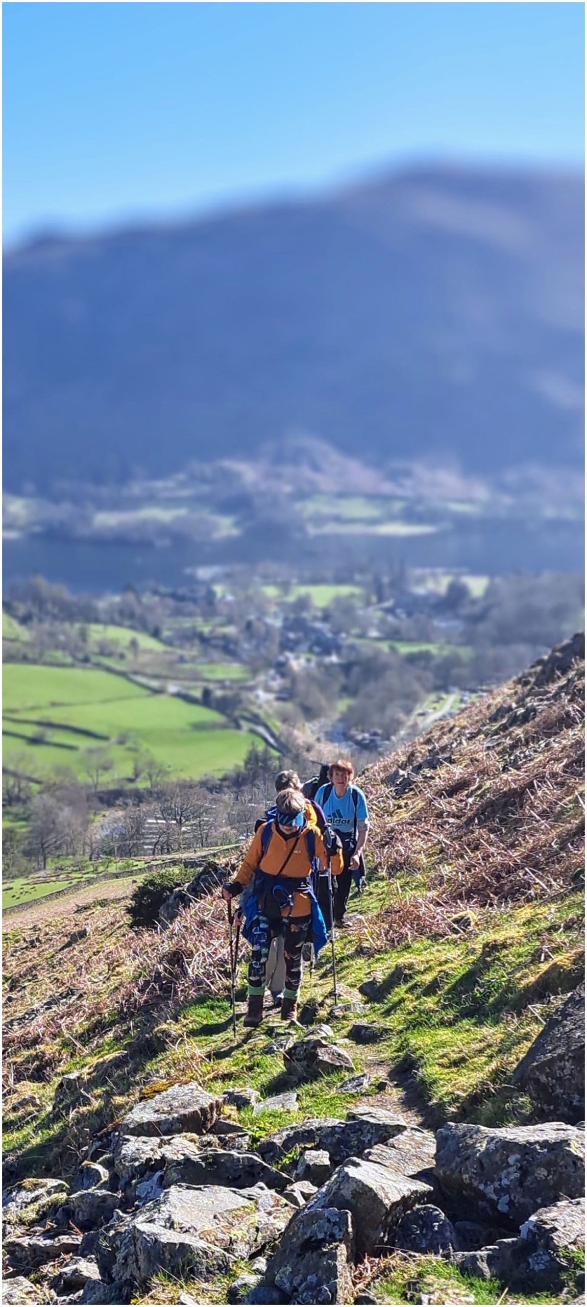 The silent six scale The Nab, stepping slowly, single file, seeking a summit