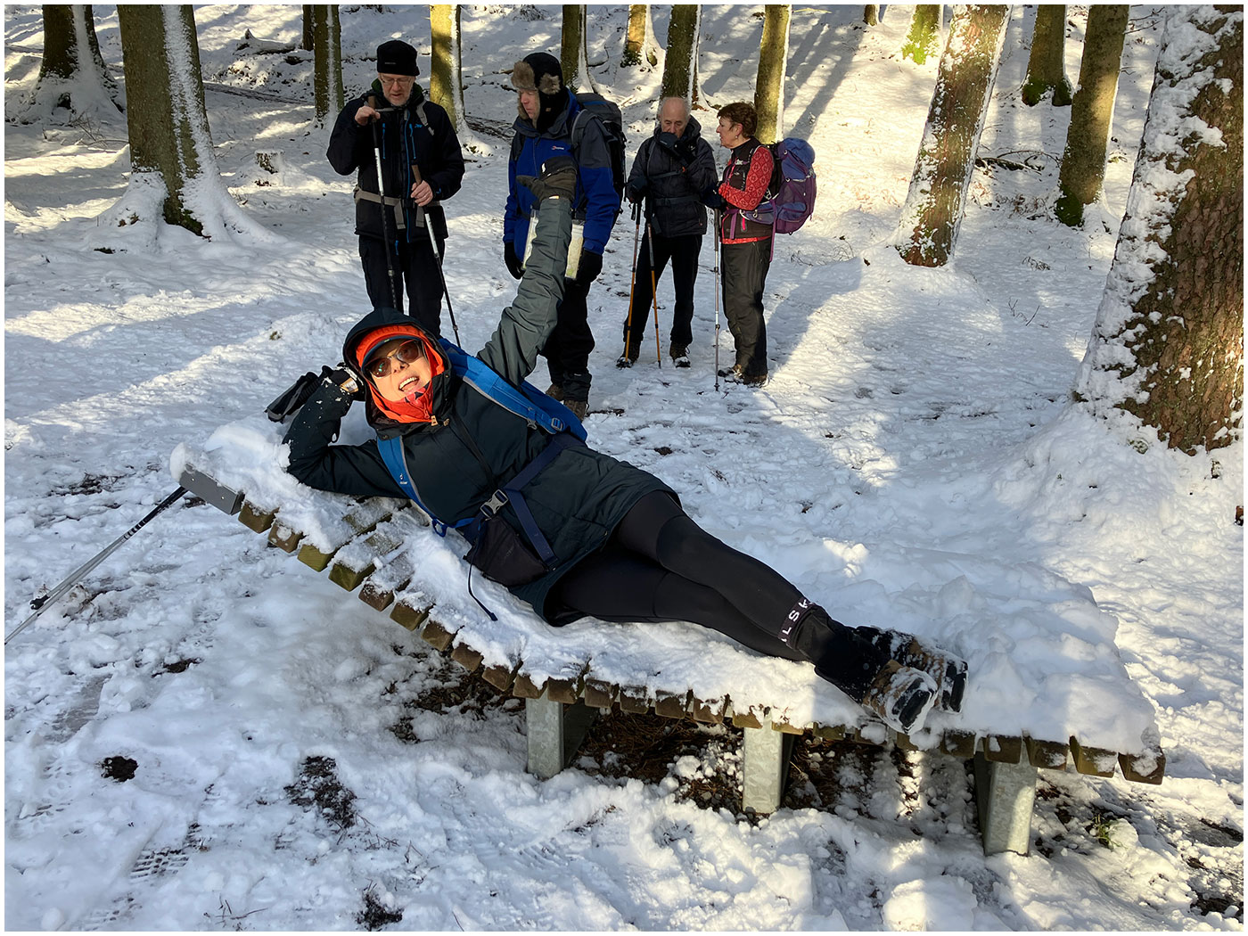 Anna reposing on one of the several recliners situated along the interesting Wow Trail