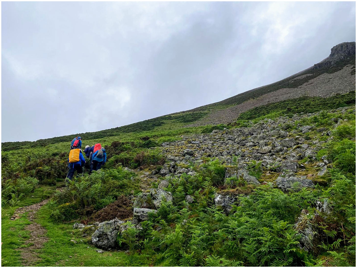 Beginning the ascent of Great Borne – rain starting